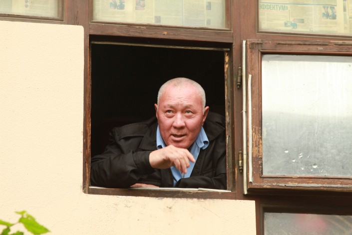 Из своего небольшого окошка за нами наблюдает охранник Канаш, в обязанности которого входит поднимать шлагбаум для жителей соседнего дома. Художник отмечает, что охранник живо интересовался ходом работ, поддерживая его шутками. А в один из дней он и вовсе поднял шлагбаум, чтобы кран вышки мог подобраться к дальнему углу стены. "В тот день вышка была шлагбаумом", - смеется Andrew. Охранник лаконично отмечает, что ему все нравится: "Он на меня смотрит, я - на него".