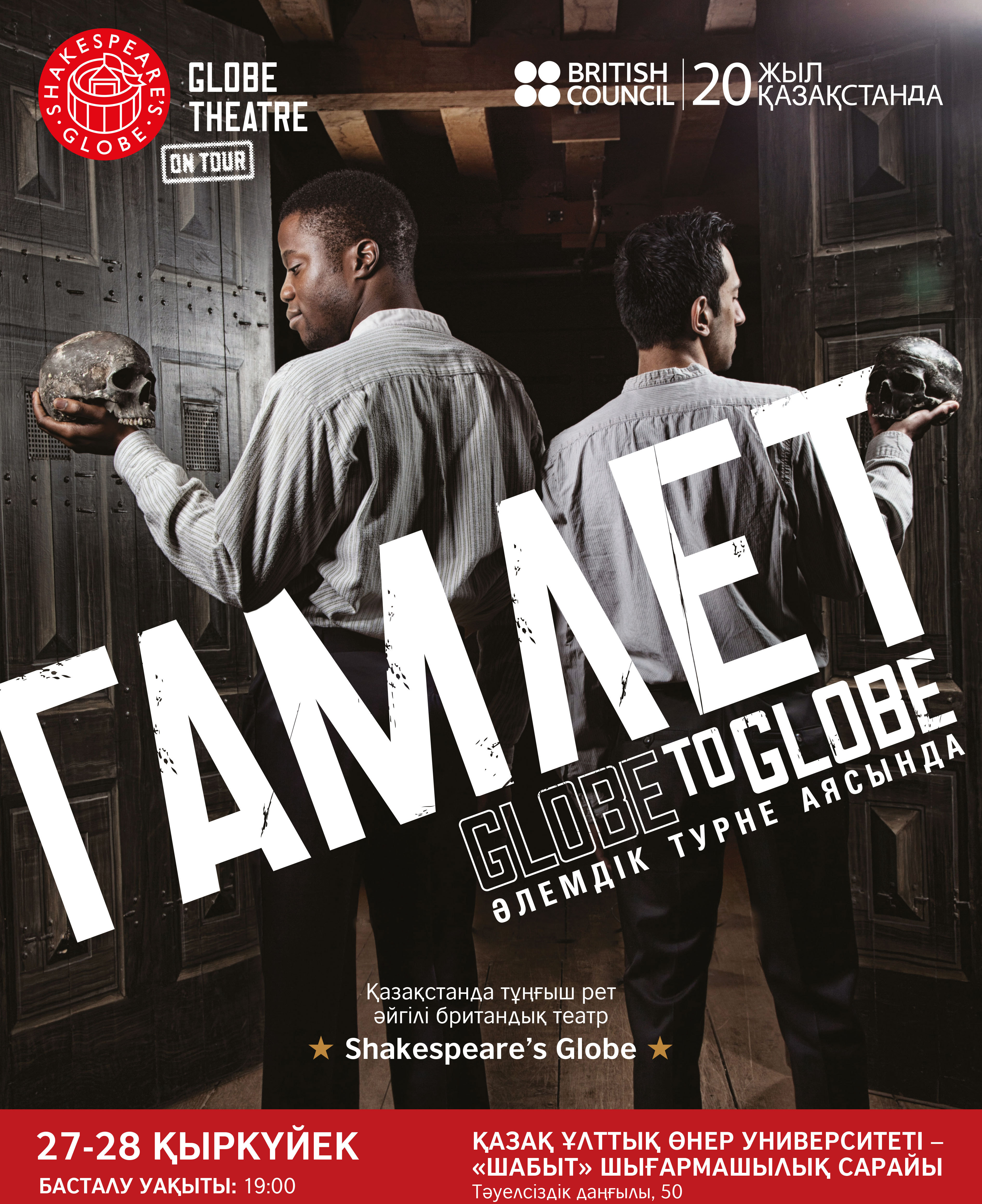 27 и 28 сентября в Астане выступит легендарный шекспировский театр Globe ("Глобус") с постановкой самого знаменитого произведения Шекспира "Гамлет", сообщает газета "Инфо-Цес". Спектакль будет идти на английском языке с казахскими и русскими субтитрами. Продажи билетов стартуют с 1 августа.