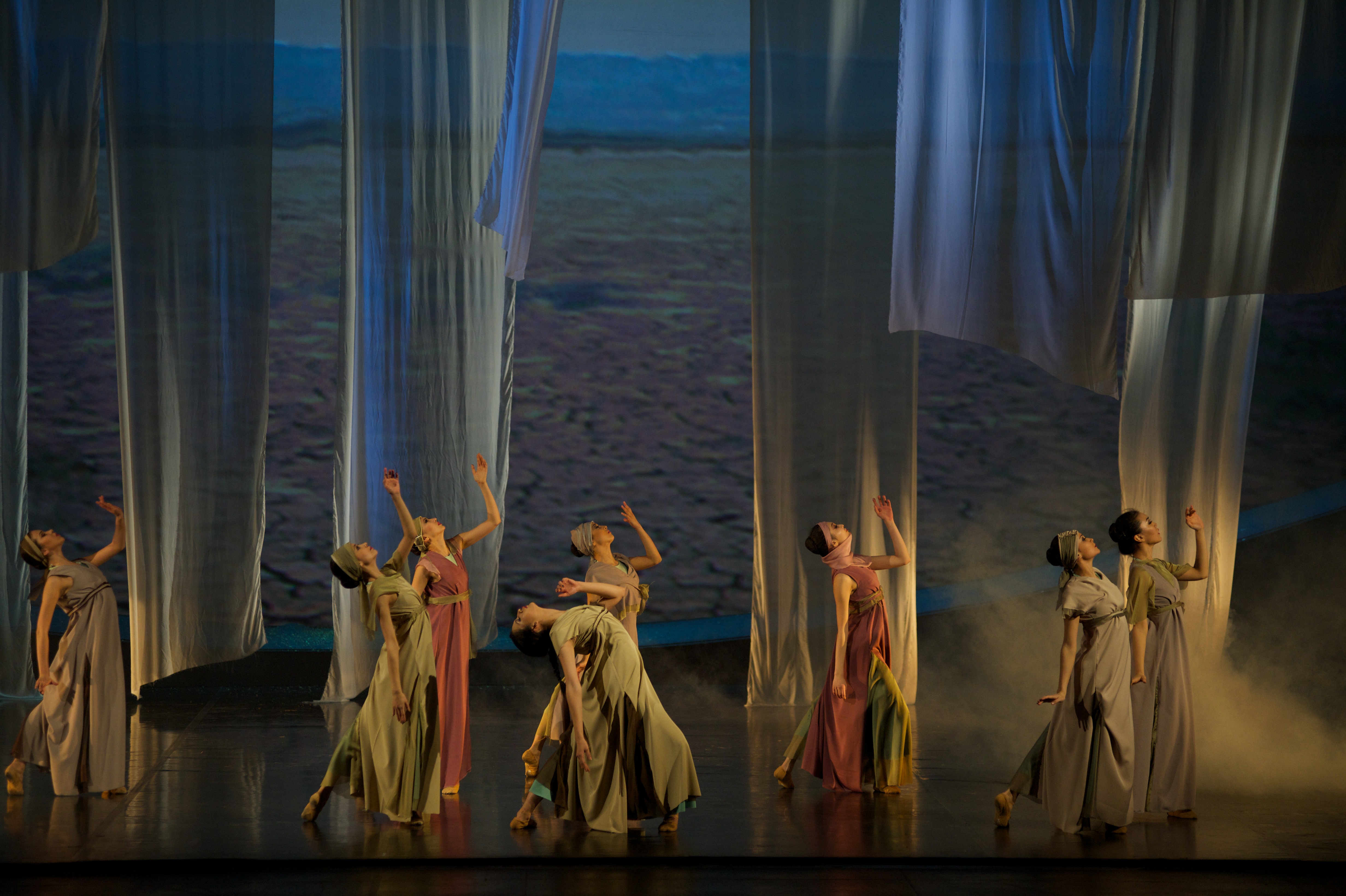 Балет "Жусан" - рассказ о формировании самобытности казахского народа и особенностях становления национального духа степняков. Хореографом-постановщиком выступила главный режиссер театра Мукарам Авахри. Хореографический язык "Жусана" - это сплав нескольких стилей: классического, современного и сontemporary dance. Балет "Жусан" создан в жанре "бессюжетного балета". С помощью выразительности человеческого тела, хореографического языка, эмоциональной наполненности, художественных и музыкальных средств создается эмоционально-содержательная танцевальная драматургия. В спектакле звучит музыка Куата Шильдебаева, Сергея Рахманинова, Арво Пярта, Карла Дженкинса.
