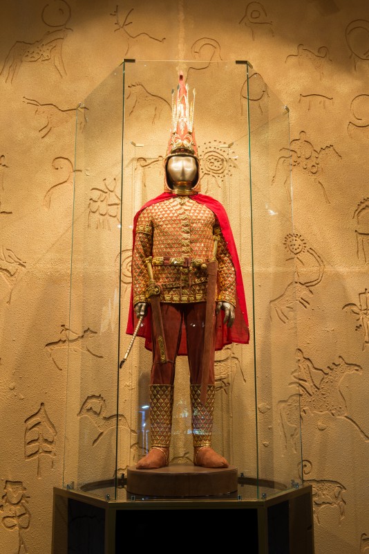 Главным экспонатом выставки является "Золотой человек", найденный в 1969 году в кургане Иссык в 50 километрах восточнее Алматы археологической экспедицией под руководством известного казахстанского археолога Кемаля Акишева. Все украшения костюма и головного убора вождя лежали непотревоженными в той последовательности, в которой они были нашиты на одежду. Все они являются произведениями искусства и принадлежат к памятникам скифо-сибирского звериного стиля. Сегодня "Золотой человек" известен всему миру и является символом Республики Казахстан. В погребальной камере археологи нашли в общей сложности 4800 украшений. После фараона Тутанхамона – это наибольшее количество золотых предметов, когда-либо найденных в гробницах. Также, на выставке будет представлена коллекция женских украшений из серебра из фондов Национального музея Республики Казахстан, в которую вошли более 170 предметов ювелирного искусства XIX – середины XX веков.