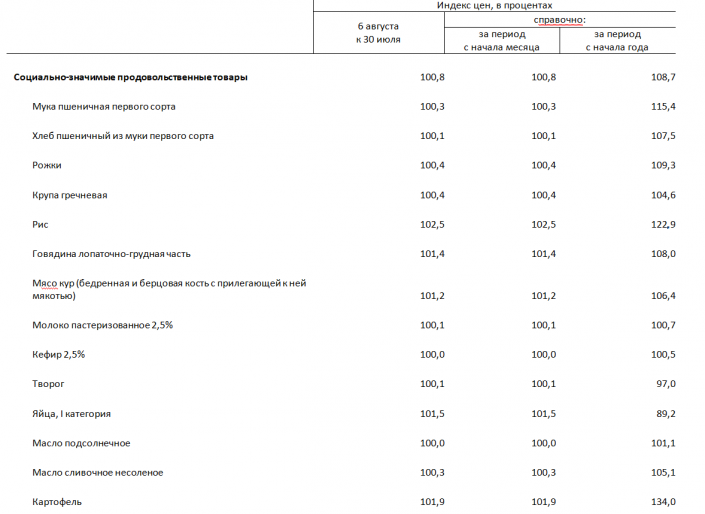 В среднем рост на социально значимые продукты с начала года составил 8 процентов.
