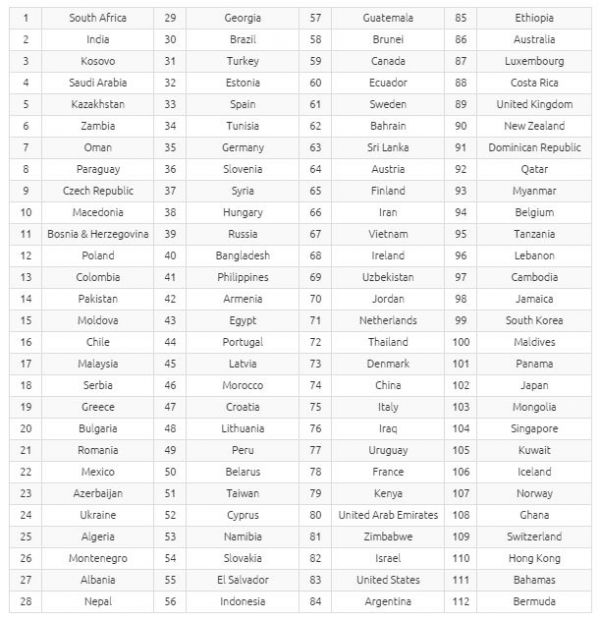 Первое место в рейтинге государств с наивысшей покупательской способностью средней заработной платы занимает Южная Африка, далее идут Индия, Косово и Саудовская Аравия. Самыми дорогими странами в мире названы Бермудские острова, Багамские острова, Гонконг, Швейцария и Гана.