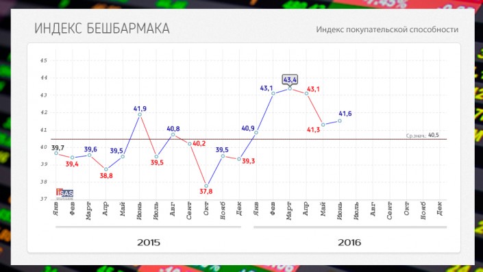 Впервые данный индекс был рассчитан в феврале 2013 года. Новый индекс отличается от предыдущего тем, что теперь это показатель достатка населения страны, который рассчитывается как отношение средней заработной платы к цене бешбармака, полученной на основе данных о ценах, выведенных в ходе маркетингового исследования. Он равняется количеству порций, которое можно приготовить на среднюю заработную плату.