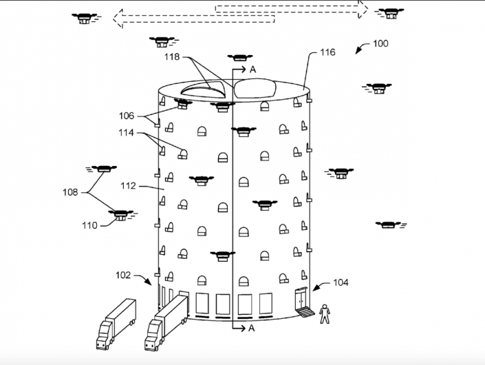 В Amazon разработали и запатентовали концепт сооружения для дронов, где они смогут храниться, заряжаться и проходить ремонт, сообщает hi-news.ru.