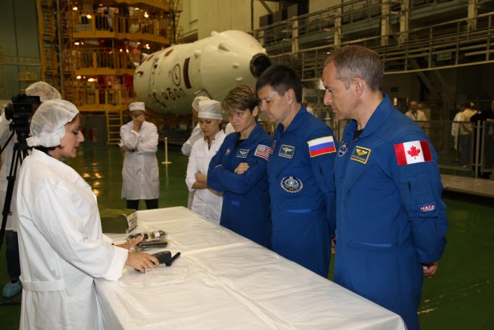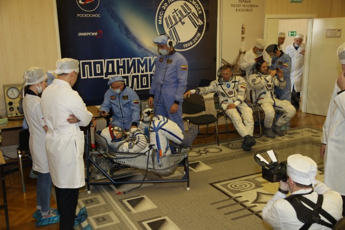 По данным "Роскосмоса", экипажи совместно со специалистами предприятий ракетно-космической отрасли проверили оборудование, с которым им предстоит работать в космосе, опробовали и протестировали герметичность полетных скафандров. Космонавты и астронавты ознакомились с местами размещения грузов в бытовом отсеке и спускаемом аппарате и провели ряд пробных операций, проверяя работу в скафандрах.