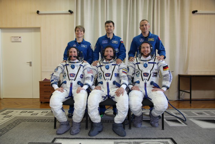 Российские космонавты Сергей Прокопьев и Олег Кононенко, германский астронавт Александр Герст, американские астронавты Серина Ауньен-Чэнселлор и Энн МакКлейн, а также астронавт из Канады Давид Сен-Жак провели первую тренировку в транспортном пилотируемом корабле.