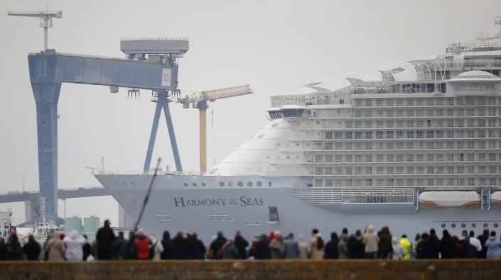 Во французском порту Сен-Назер спущен на воду круизный лайнер "Гармония морей" (Harmony of the Seas), который на сегодняшний день является самым большим в мире пассажирским судном, сообщает The Telegraph.