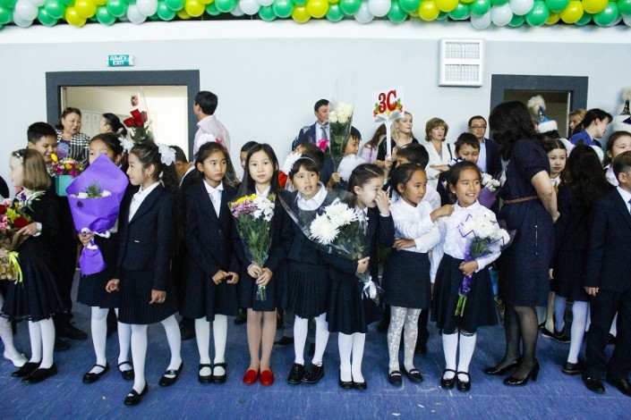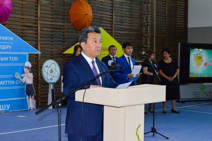 Линейка, посвященная началу учебного года, началась символично - с торжественного вручения ключа школы руководителем проекта строительства НИШ Жанабилом Байжигитовым директору школы Бауыржану Узакбаеву. Группа иностранных преподавателей школы удивила гостей своими вокальными выступлениями, и более всего детей впечатлило исполнение ими казахских песен.