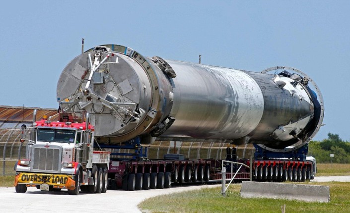 Ракета Falcon 9 транспортируется в ангар. © Reuters