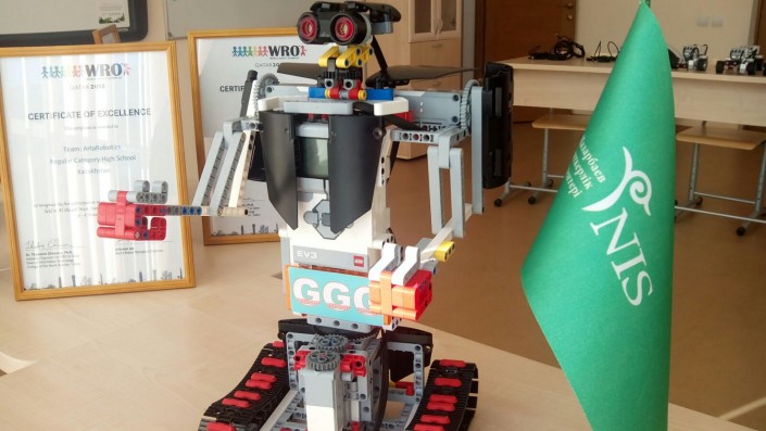 Робота-GGG создал школьник из Петропавловска Алимхан Болат. Фото Данияра Уалиева