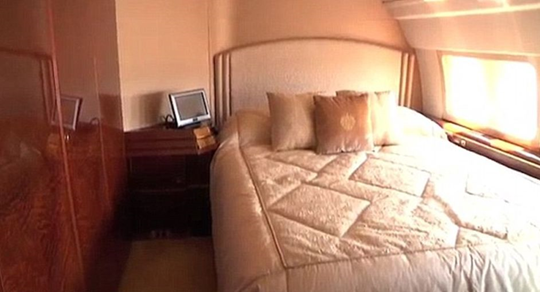 Из самолета, рассчитанного на перевозку 200 человек, Трамп сделал джет всего на 43 пассажира. Внутри судно больше напоминает дорогую гостиницу: в интерьере преобладают натуральная кожа, дерево, отделка камнем. В самолете предусмотрена гостиная, спальня и ванная, покрытая настоящим золотом.