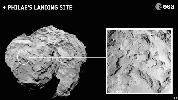 Ученые определили место посадки зонда на комету Чурюмова-Герасименко Место посадки спускаемого модуля "Фила". © ESA