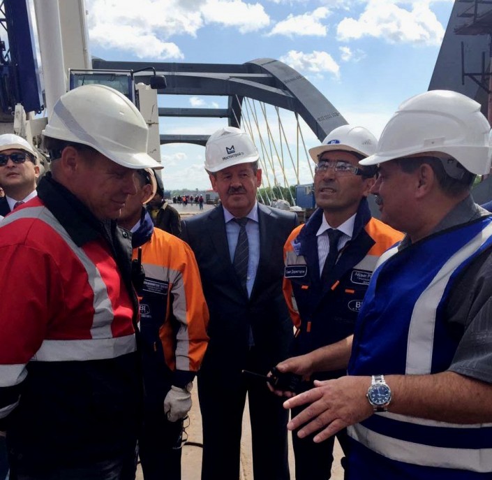 Мостовой переход через реку Иртыш уникален как с позиции транспортной логистики, так и инженерных решений. Он состоит из 4 мостов, из которых наибольший интерес представляет главный арочный мост над основным руслом Иртыша. Ключевой этап строительства посетил в этот день также аким Павлодарской области Булат Бакауов.