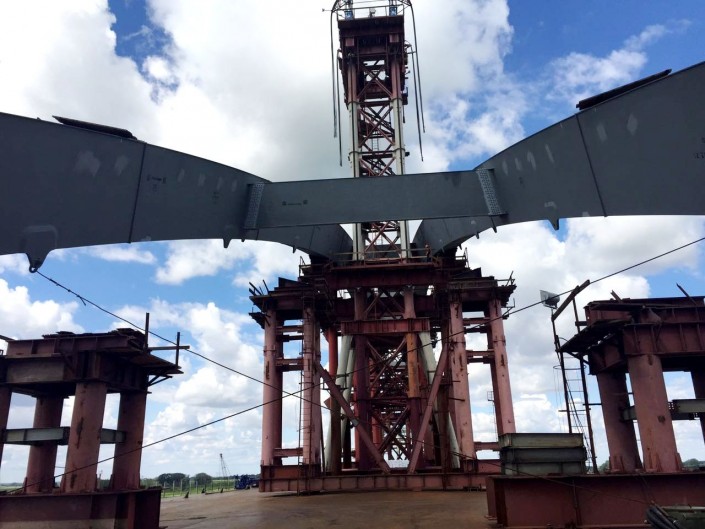 Накануне вечером на строительстве крупнейшего в регионе мостового перехода протяженностью 12,3 километра через реку Иртыш в Павлодарской области, успешно завершились подъем и стыковка центральной арки весом 1357 тонн. Событие уникальное - впервые в СНГ для подъема арочно-пролетного строения применена технология heavy lift. "При применении данного инженерного решения подъем металлической арки осуществляется на канатах с помощью специализированных домкратов. Данный способ является одним из передовых методов монтажа пролетных строений мостов - тяжелая металлическая конструкция поднята на высоту 47 метров. К примеру, ранее арочные пролеты устанавливали сплошными сооружениями и с помощью сложных металлоемких вспомогательных конструкций, что, естественно, влияло на удорожание проектов и сроки строительства", - рассказывает Вячеслав Фридман, главный инженер ТОО "Казахдорстрой", дочерней компании BI Group, являющейся генеральным подрядчиком проекта.
