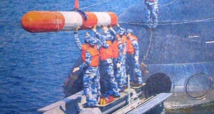 На фото видно, как моряки загружают торпеду в носовой отсек корабля. © China Defense Forum