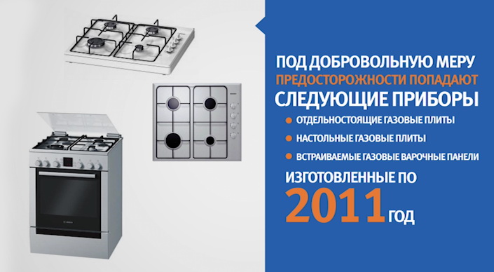 Под добровольную меру предосторожности попадают следующие приборы марок BOSCH и SIEMENS, изготовленные по 2011 год: