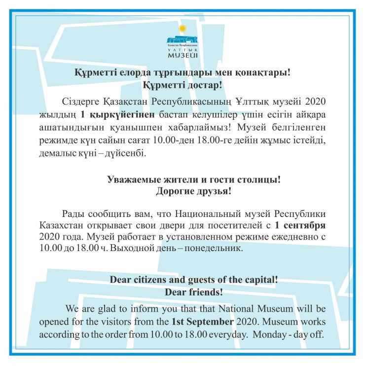 В Нур-Султане с 1 сентября Национальный музей открыл двери для посетителей, передает Tengrinews.kz.