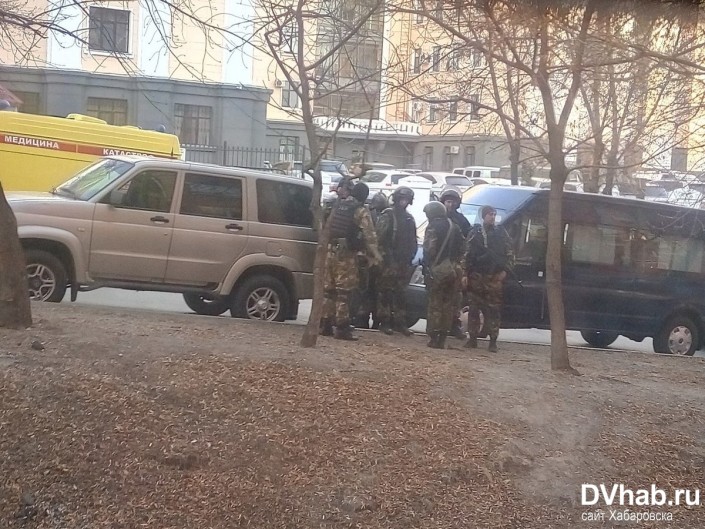 "21 апреля в 17.02 по местному времени в приемную Управления ФСБ России по Хабаровскому краю вошел неизвестный и, не пересекая установленную зону технического контроля, начал стрелять по находившимся в приемной людям. Погибли сотрудник ФСБ России и один из двух посетителей - граждан стран СНГ, второй ранен. Нападавший уничтожен", - говорится в сообщении ЦОС ФСБ РФ.