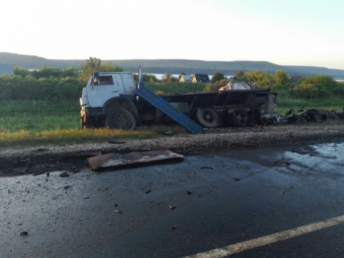 Как отмечали в республиканском МВД, в ночь на 2 июля на 52-м километре дороги Альметьевск - Заинск автобус столкнулся с "движущимся в попутном направлении грузовиком, буксируемым на жесткой сцепке автомобилем КамАЗ". После удара автобус опрокинулся и загорелся.