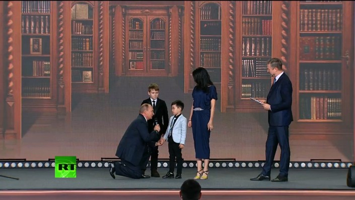 Когда на сцену вышли двое юных географов, прославившихся в Интернете, благодаря знанию всех столиц и стран мира, Путин обратился к самому маленькому: "Ты страны угадываешь? Уагадугу столица какой страны?"