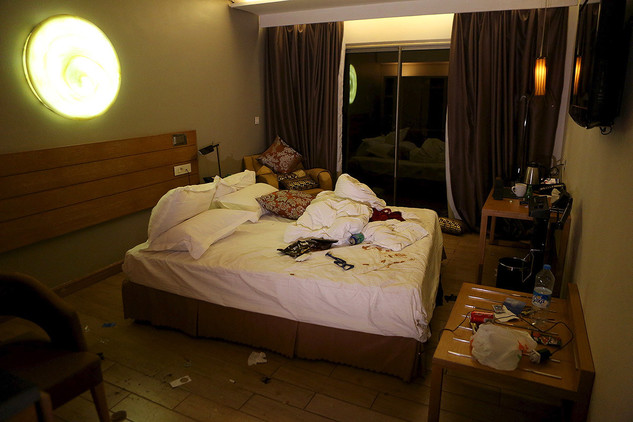 При этом источник телеканала рассказал, где находились погибшие россияне во время атаки террористов. По его словам, группа из шести человек откололась от компании других сотрудников "Волга-Днепр" и спустилась из номера гостиницы вниз на завтрак. Именно они и стали жертвами боевиков.