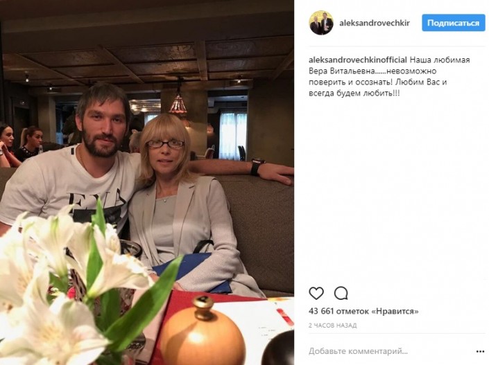 Зять Глаголевой, хоккеист Александр Овечкин опубликовал на своей странице в Instagram совместное фото с ней. В подписи говорится: "Невозможно поверить и осознать".