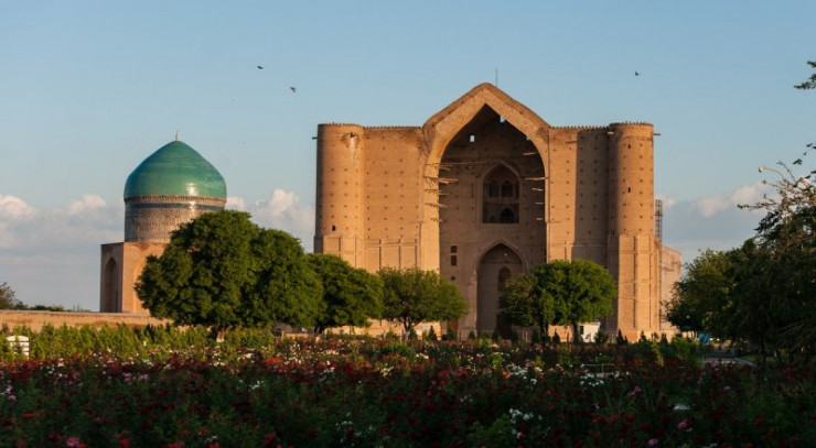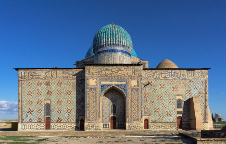 Еще одним невероятным памятником культуры и жемчужиной архитектуры средневекового зодчества Центральной Азии по праву считается мавзолей Ходжи Ахмеда Яссауи. Его даже внесли в список всемирного наследия ЮНЕСКО, поскольку это единственная из четырех построек Хромого Тимура, дошедшая до нас в том виде, в каком была возведена в XIV веке! К тому же при его постройке применялись наиболее прогрессивные, новаторские решения архитекторов того времени, заложившие множество новых конструктивных приемов и сформировавшие тот своеобразный архитектурный стиль позднего Средневековья. Для его строительства были приглашены искусные мастера со всех концов империи Темучина, имена некоторых дошли до нас, оставленные на различных частях отделки и убранства мавзолея.