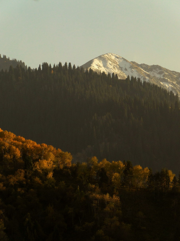 Осенние краски медленно сползают вниз как по холсту, спускаясь все ниже по горным склонам Заилийского Алатау.