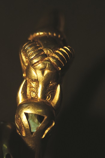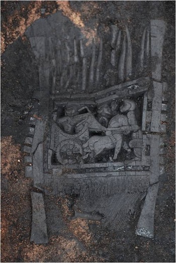 Тогда в кургане высотой более одного метра ученые обнаружили останки "Золотой женщины", около 80 золотых украшений, а также конскую узду, бытовые предметы, украшения и вещи, которые, согласно поверьям, были необходимы в загробной жизни. Одна из уникальных находок - гребень с изображением батальной сцены того периода между саками и персами.