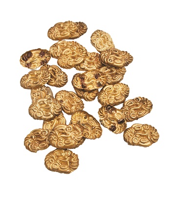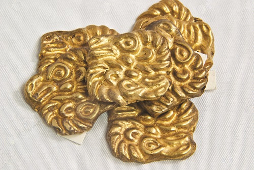 Свастиковидные бляшки с изображением четырех голов грифонов, расположенных в круговой композиции.
