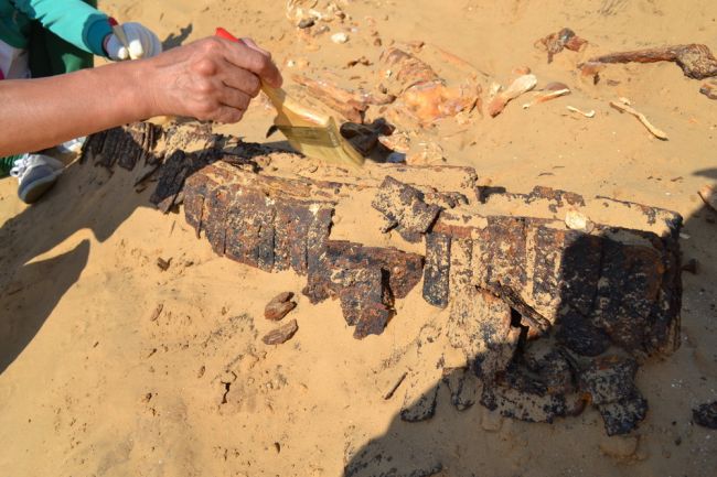 "Мы предполагаем, что захоронение относится к огузскому периоду, это IX-XI века. Именно огузские племена делали конские кольчуги, - говорит директор археолого-этнографического музея АГУ Ания Ермагамбетова. - У университета есть договоренность с национальным музеем Астаны о бесплатной реставрации всех наших находок. В данный момент все найденные атрибуты воина и его коня отданы на реставрацию".
