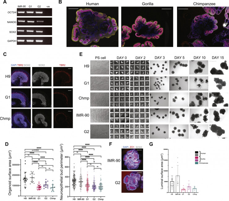 Исследователи из Лаборатории молекулярной биологии Медицинского исследовательского совета (MRC) в Кембридже собрали клетки людей, горилл и шимпанзе и создали условия, имитирующие среду внутри зародыша, и вырастили при помощи стволовых клеток миниатюрное подобие мозга. Исследование показало, на каком этапе развития и как человеческий мозг обретает в три раза больше нейронов, чем у обезьян.