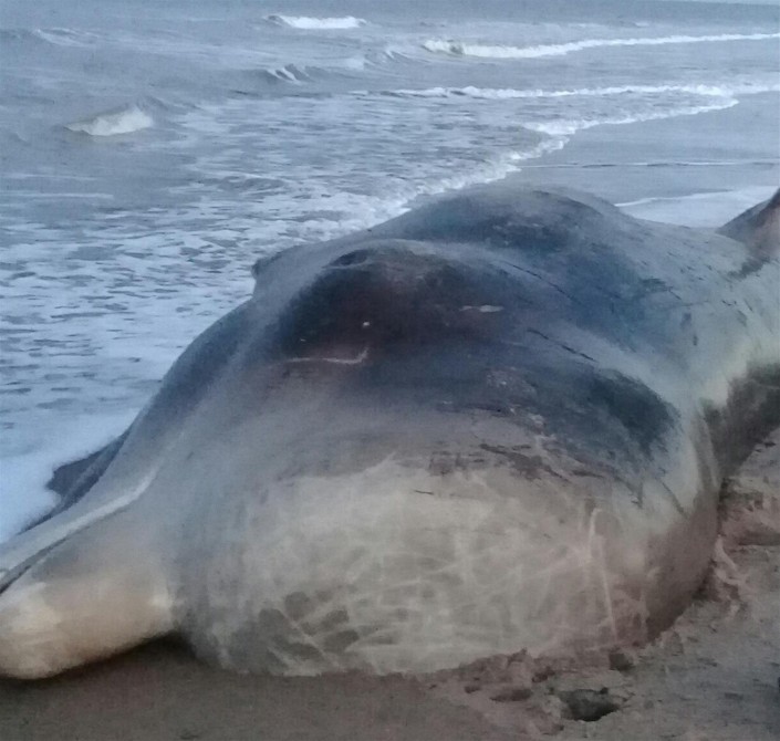 Причина гибели огромного кита весом около 50 тонн еще не ясна, однако следы травмы между спинным плавником и хвостом дают основания полагать, что ее причиной стала не старость, а нападение других животных.