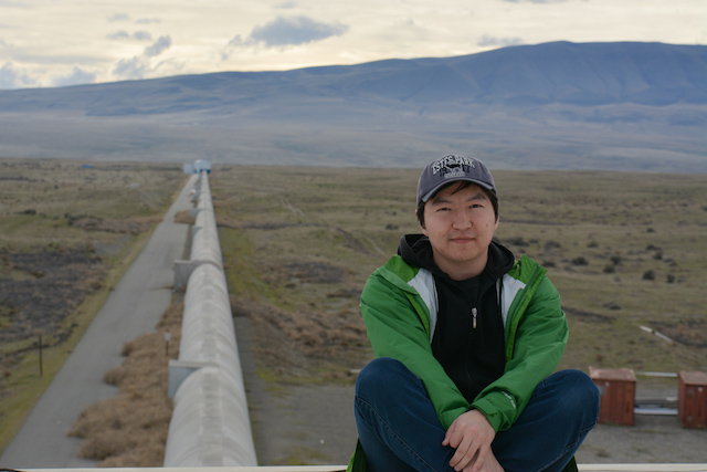На крыше обсерватории LIGO в Хэнфорде, на фоне виден западный рукав интерферометра. Фото © Дархан Туенбаев.