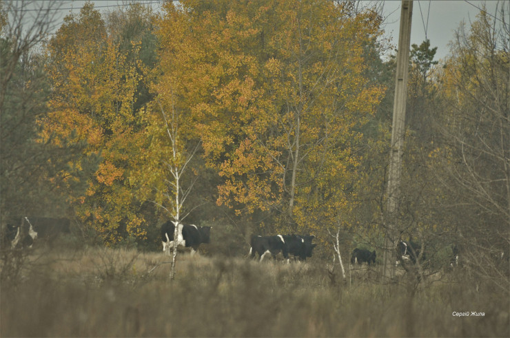 Стадо коров оказалось в дикой природе после того, как в зоне заповедника скончались самопоселенцы села Лубянка, находящегося у западной границы зоны отчуждения.