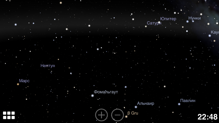 Иллюстрация расположения звезд и планет в настоящее время, по данным приложения Stellarium