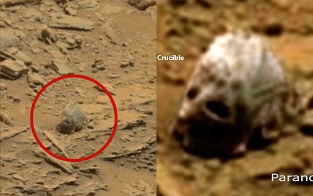 На снимках, сделанных марсоходом Curiosity, уфологи обнаружили очередной странный объект. Предмет, привлекший внимание наблюдателей, удивительно похож на череп инопланетянина или снежного человека, пишет Metro.