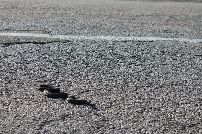 На фото гадюка позирует прямо на асфальте. Как рассказали специалисты, раньше восточную степную гадюку использовали для получения яда, но в связи с резким сокращением численности промысел был прекращен. Несмотря на ядовитость, для человека гадюка опасности не представляет.