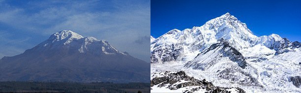 Французские ученые объясняют этот парадокс строением Земли. Наше планета не идеально шарообразная, ее радиус на экваторе почти на 20 километров шире, чем на полюсах. Чимборасо находится ближе к экватору, чем Эверест. Последний может считаться самой высокой горой, только если ориентироваться на уровень моря. Однако если измерять высоту горы от центра Земли, эквадорский вулкан окажется на несколько метров выше Эвереста - 6384 метра против 6381 метра.