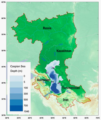 Каспийское море расположено между Европой и Азией, выход к нему имеют пять стран. Водоем занимает территорию площадью 371 тысячу квадратных километров. Кроме запасов нефти, газа и соли, водоем является нерестилищем для около 90 процентов от общемировой численности осетровых. © wikipedia.org