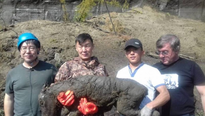 В ходе палеонтологической экспедиции специалисты также обнаружили останки мамонта с мягкими тканями и шерстью. Неполный скелет древнего животного найден 12 августа в 220 километрах вниз по течению реки Яна в местности Юнюген.