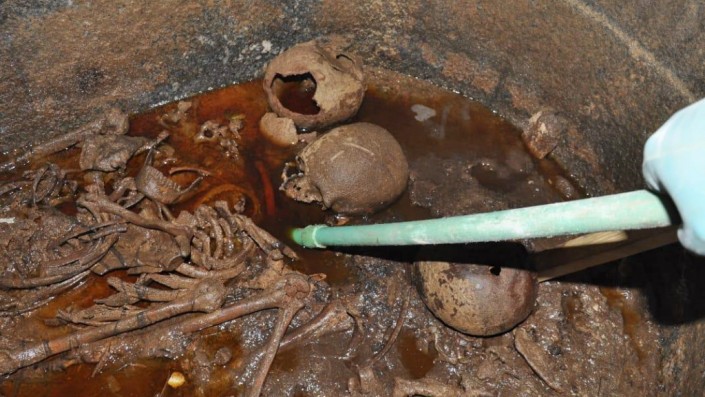 Выяснилась еще одна любопытная деталь: по всей видимости, процесс погребения проводился поэтапно, поскольку тела в саркофаге были уложены друг на друга, "стопкой".