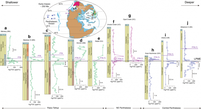 По мнению американских и китайских ученых, Пермское вымирание произошло из-за извержения вулканов. Исследователи обнаружили в отложениях возрастом около 252 миллионов лет следы ртути, выпущенной в атмосферу планеты при сгорании запасов угля, в которых накапливается этот металл. Затем ртуть вместе с дождем попала в Мировой океан, а потом и в морские отложения по всему миру.