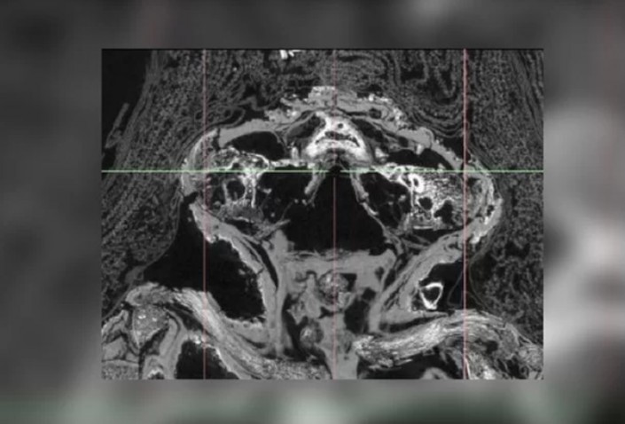 Открыв эту аномалию, работники музея связались с Нельсоном и его коллегами, специалистами в области компьютерной микротомографии. Ученые просветили мумию при помощи сканера и смогли увидеть даже самые мельчайшие ее детали, которые рассказали им о том, кто на самом деле был погребен под слоем позолоченного папируса и тканей.
