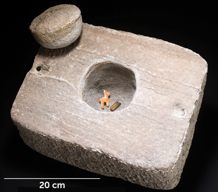 Сообщается, что внутри находки хранилась фигурка ламы, вырезанная из раковины моллюска, и свернутый в цилиндр кусок золотой фольги, которая носилась как браслет представителями инкской аристократии. Ученые считают, что предметы являются подношением богам.