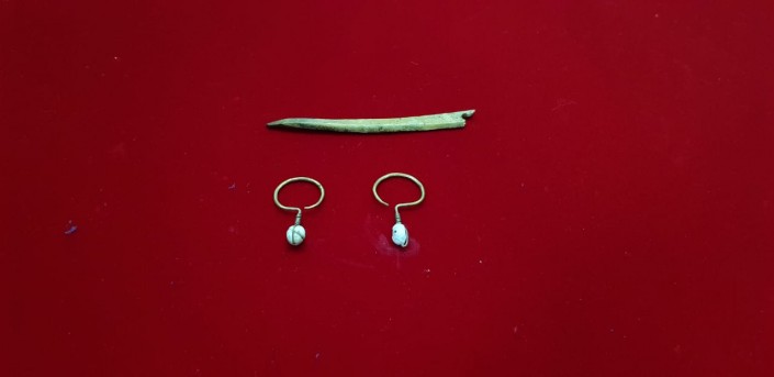 "Большинство памятников древности мы находим разграбленными. Честно говоря, думали, что и с этим будет так же. Но мавзолей оказался нетронут. На глубине 2,35 метра мы обнаружили деревянный саркофаг, в котором лежал целый женский скелет. Одежда и кожаные сапоги почти не сохранились. Там же отдельно лежали золотые серьги и золотая ритуальная чаша, а также заколка из кости животного. Ритуальные предметы закапывали с покойниками начиная с эпохи бронзы", - рассказал археолог, ведущий научный сотрудник Национального музея РК Айбар Касеналин.