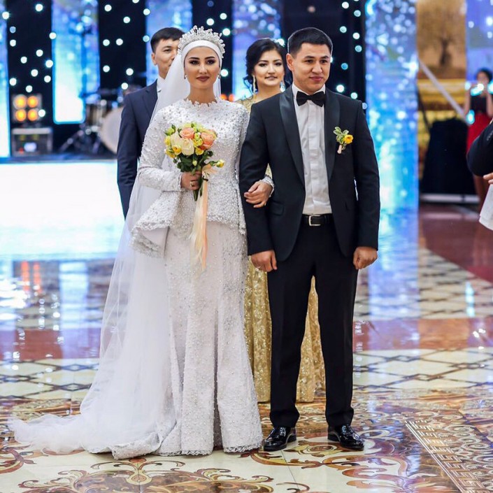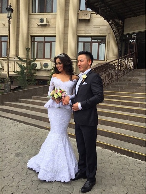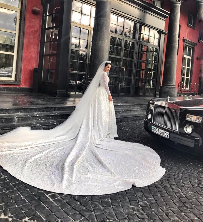 Клара Исаның қалыңдық көйлегі - дизайнер Наиль Байкучуковтың қолынан шыққан туынды.