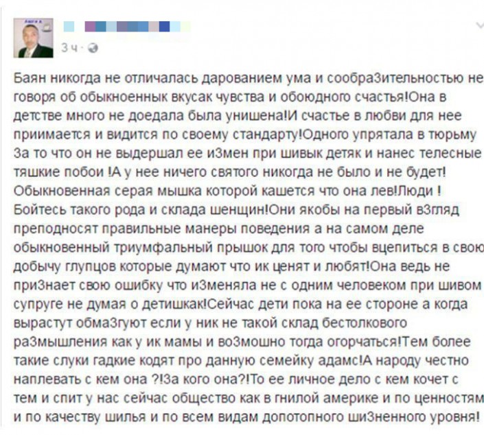 "Баян, вы выше этого! Он даже неграмотный человек! Чего с него взять. Хочет стать немного известным за ваш счет".