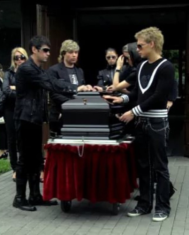 Ранее снимки с репетиции похорон Алибасова опубликовал адвокат Сергей Жорин. На кадрах, снятых семь лет назад, виден черный гроб, около которого собрались друзья и подопечные продюсера. В частности, на фото запечатлены участники группы "На-На".