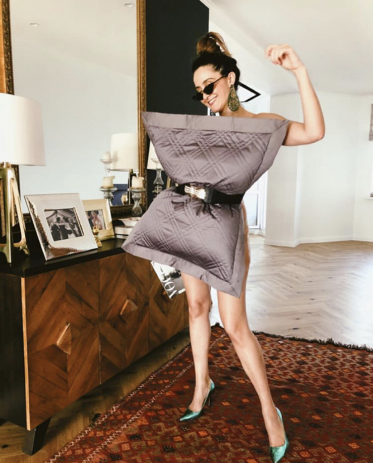 Instagram қолданушылары арасында #QuarantinePillowChallenge, қазақшалағанда "Жастық челлендж" кең тарап кетті. Қыз-келіншектер жастықтан көйлек жасап, киімін сәнді әшекеймен әсемдеп, карантин кезіндегі суреттерін парақшасына жүктеп жатыр. Жастықты денеге бекіту оп-оңай, оған қалың белдік қана керек.